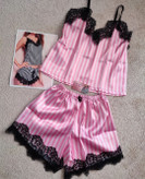 نیم تنه دانتل شورتک راه راه صورتی