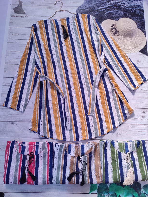 شومیز مانتویی راه راه یقه کوبایی