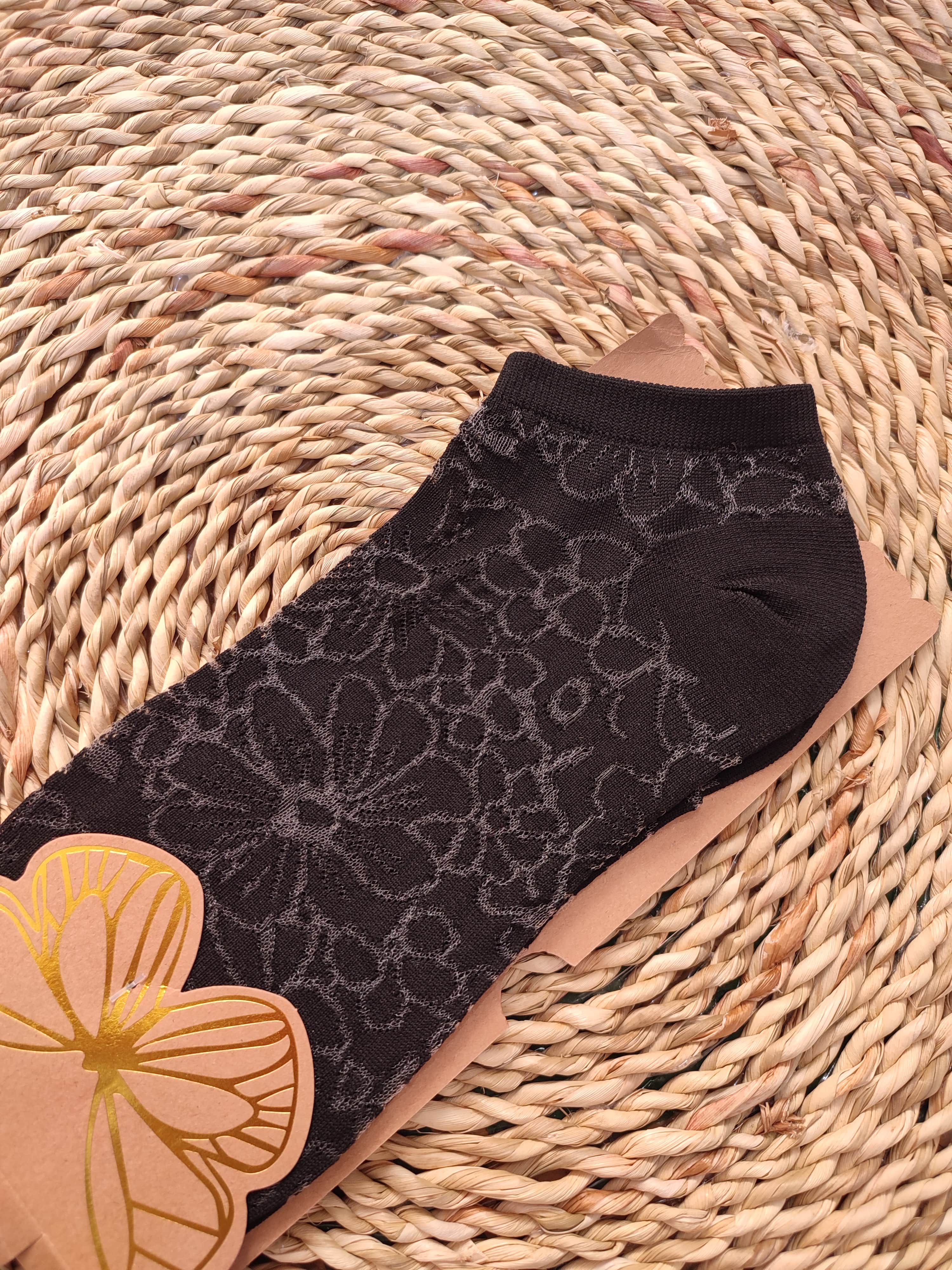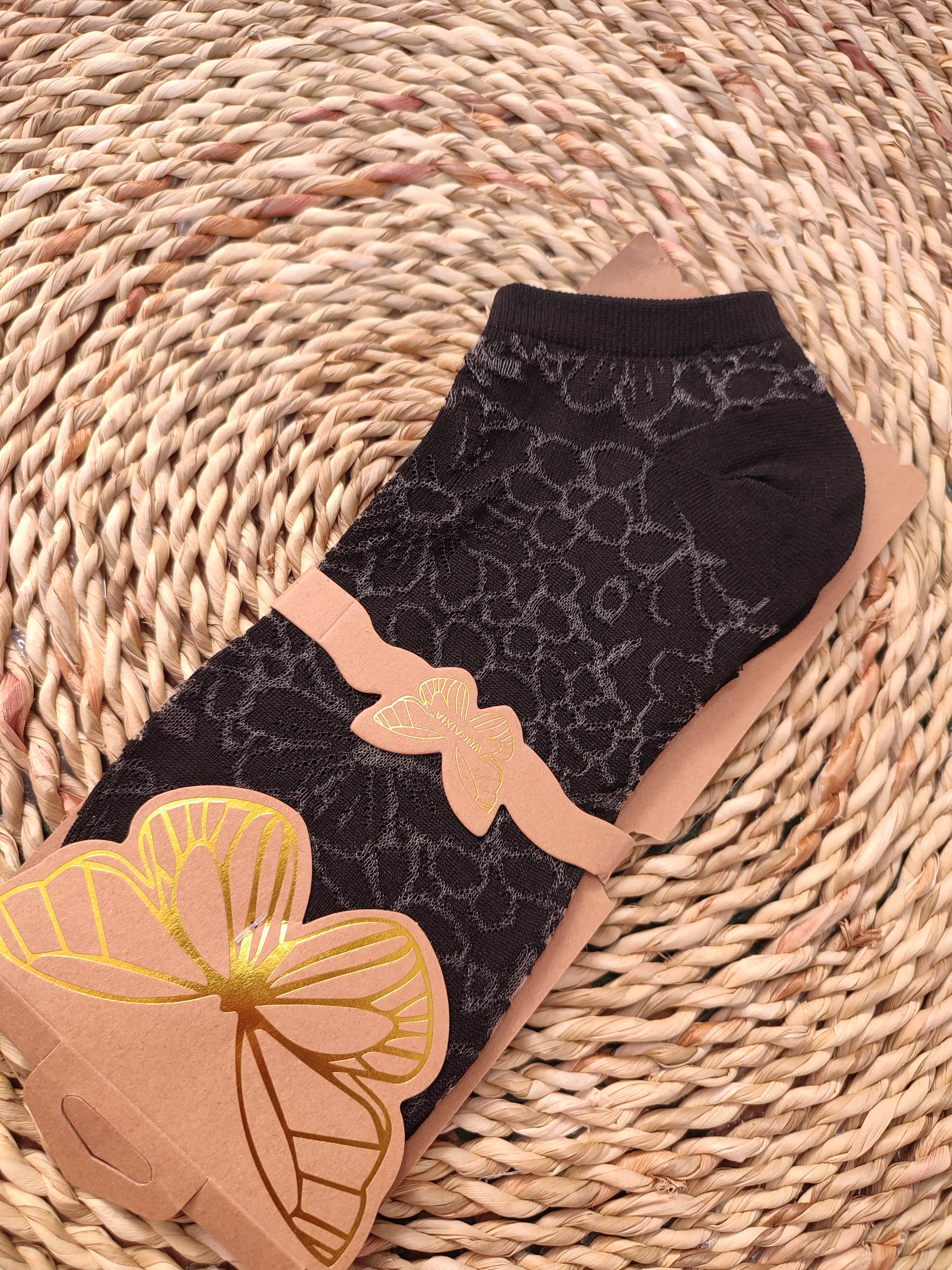 جوراب مچی تور مشکی وارداتی طرح گل زنانه پروانه