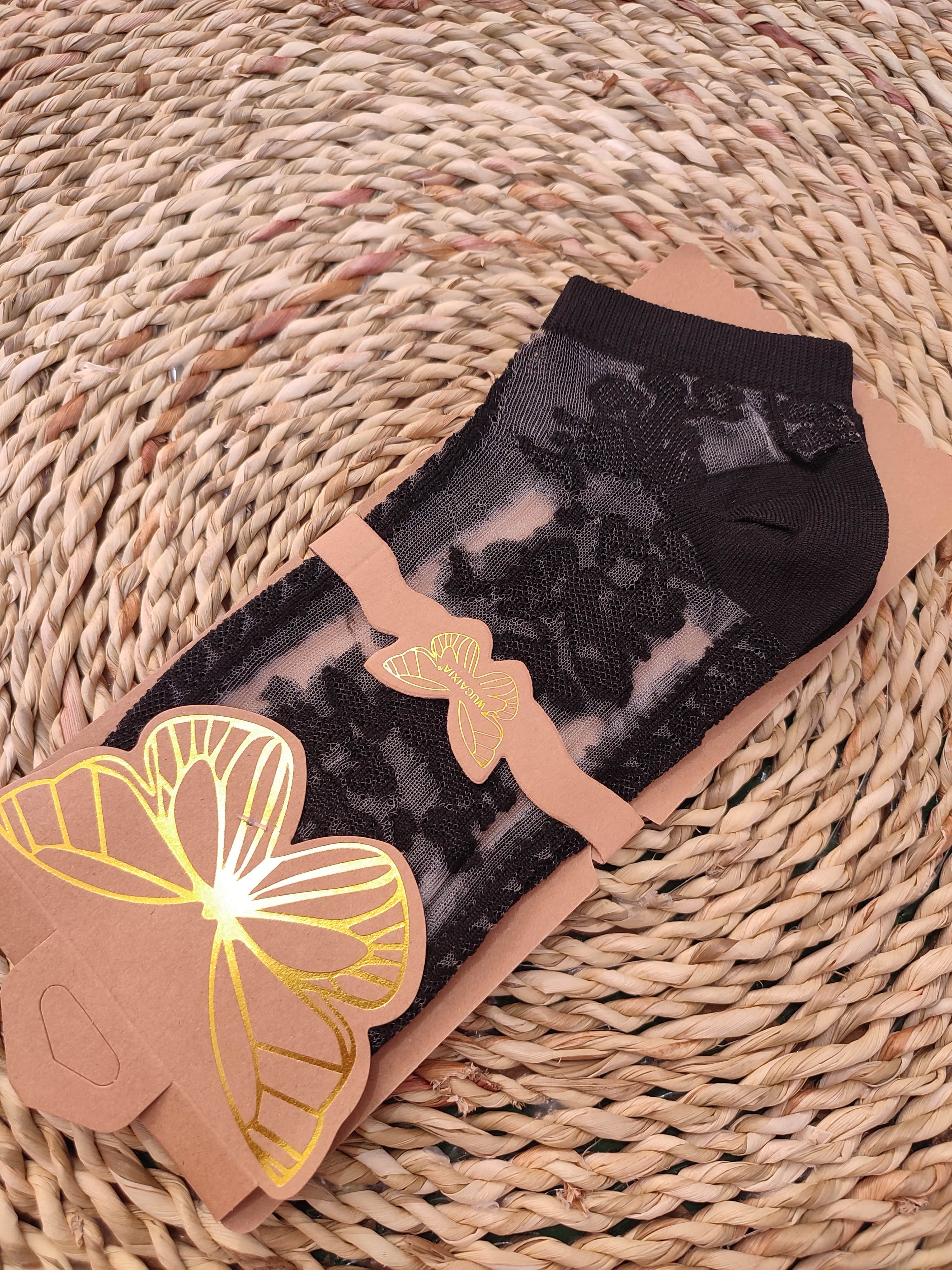 جوراب مچی تور مشکی وارداتی طرح گل زنانه پروانه