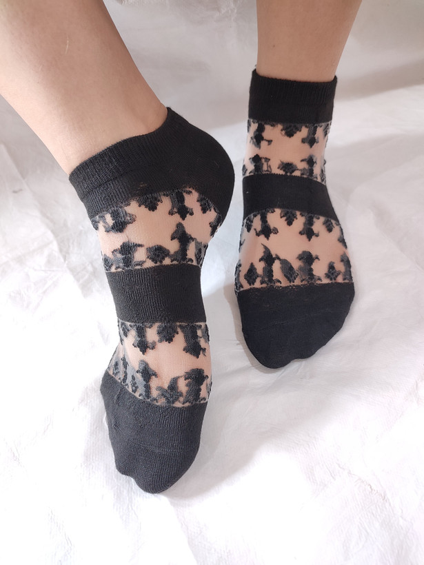 جوراب مچی تور مشکی وارداتی طرح گندمی زنانه پروانه