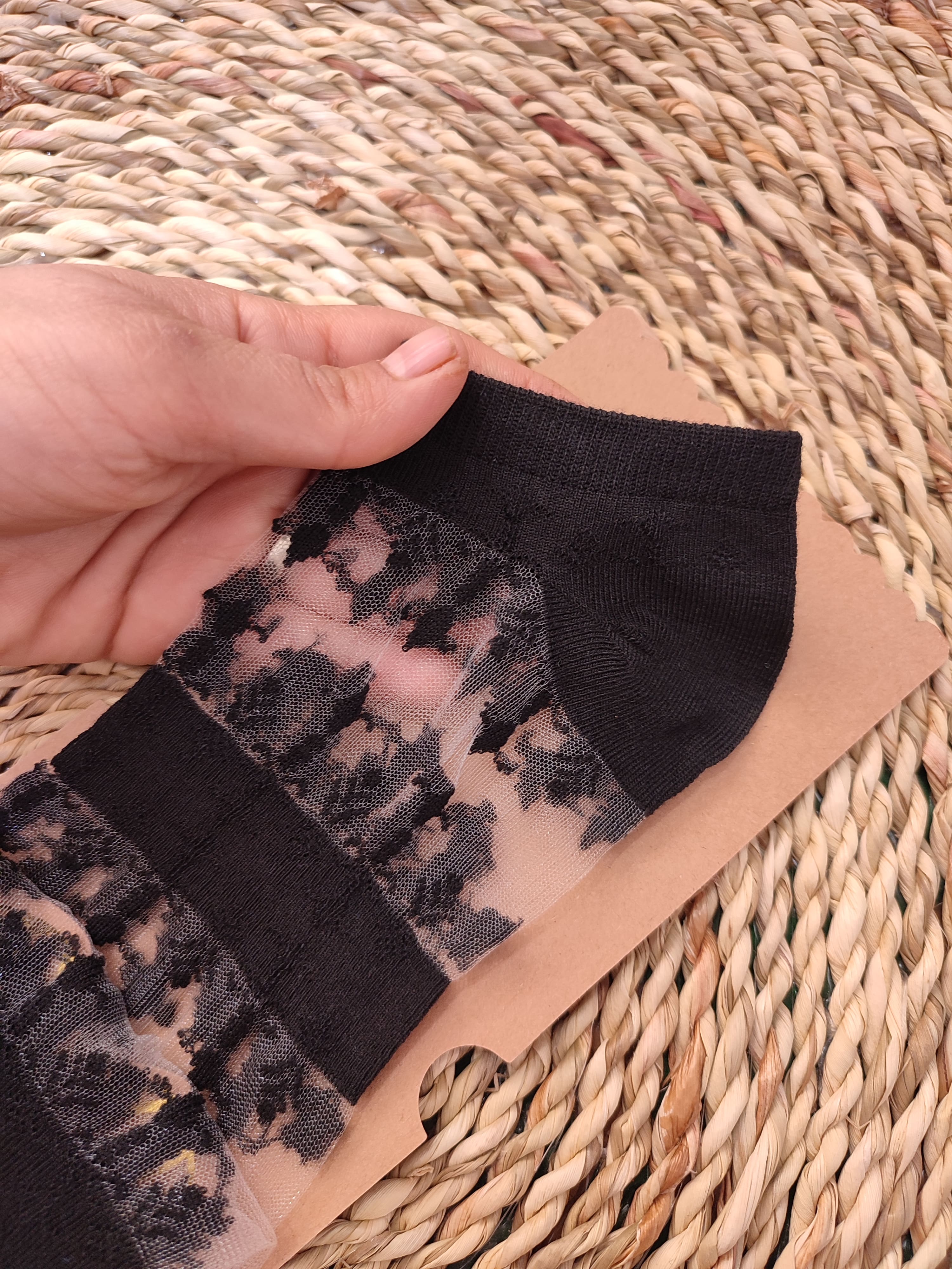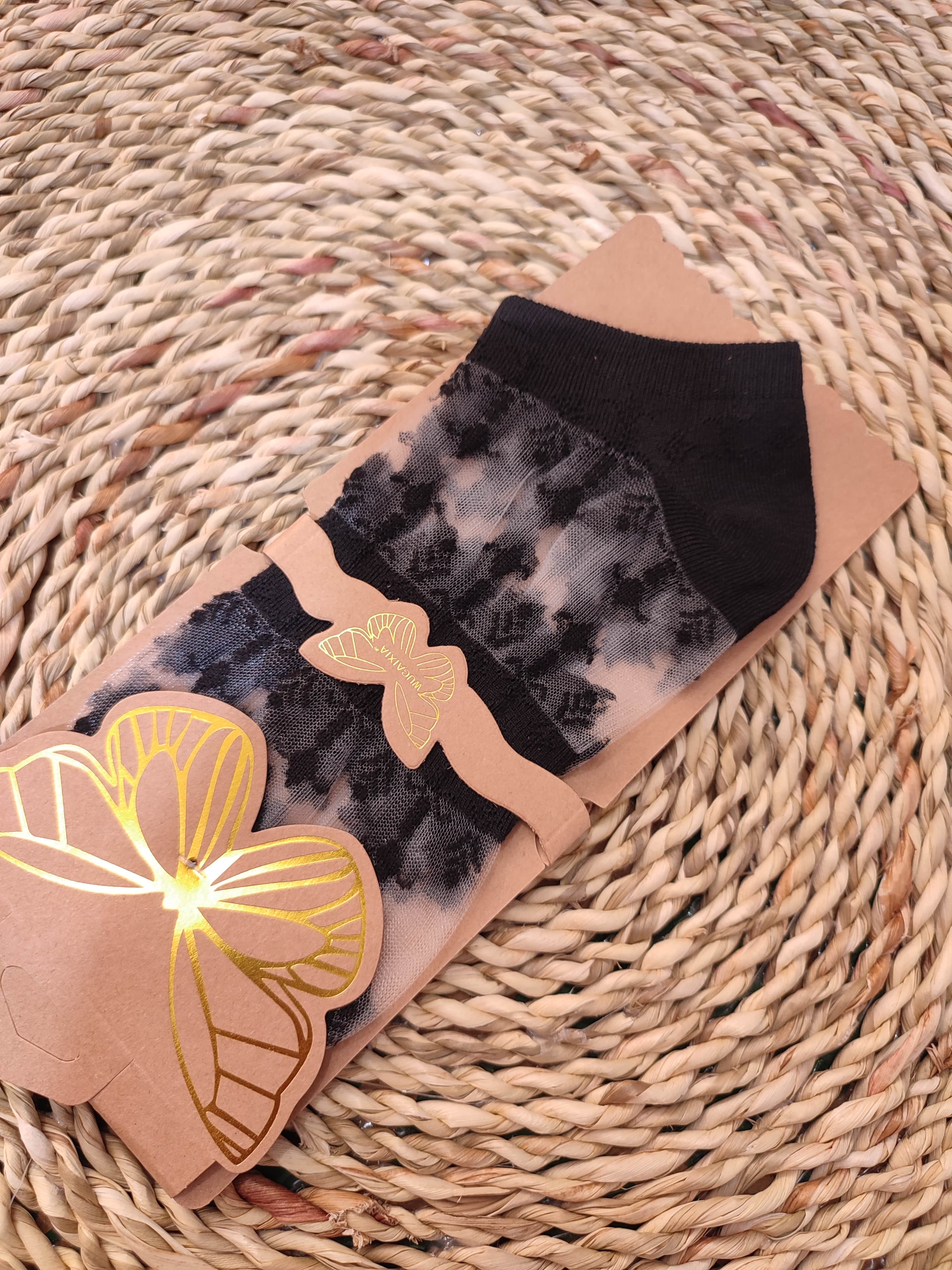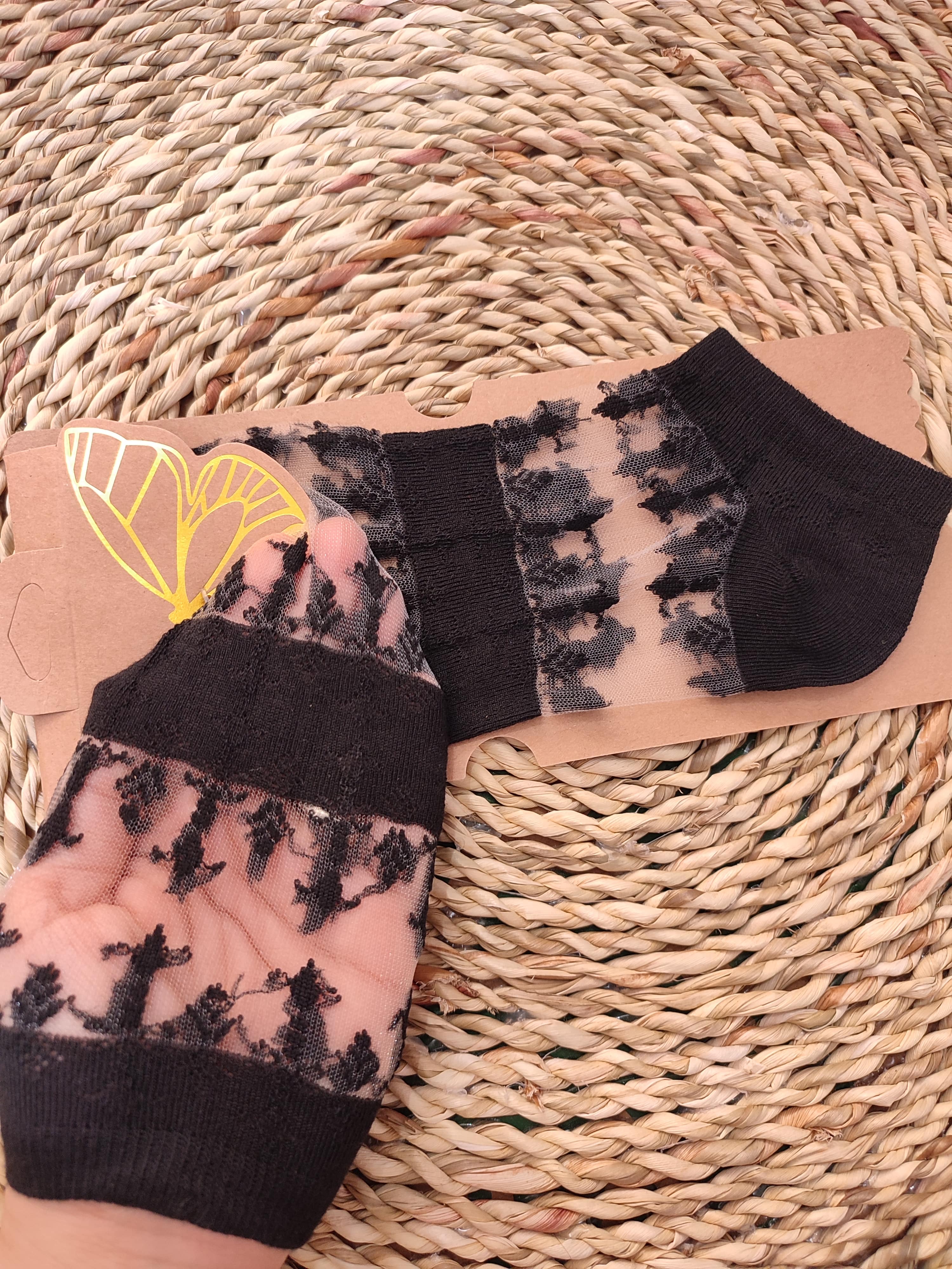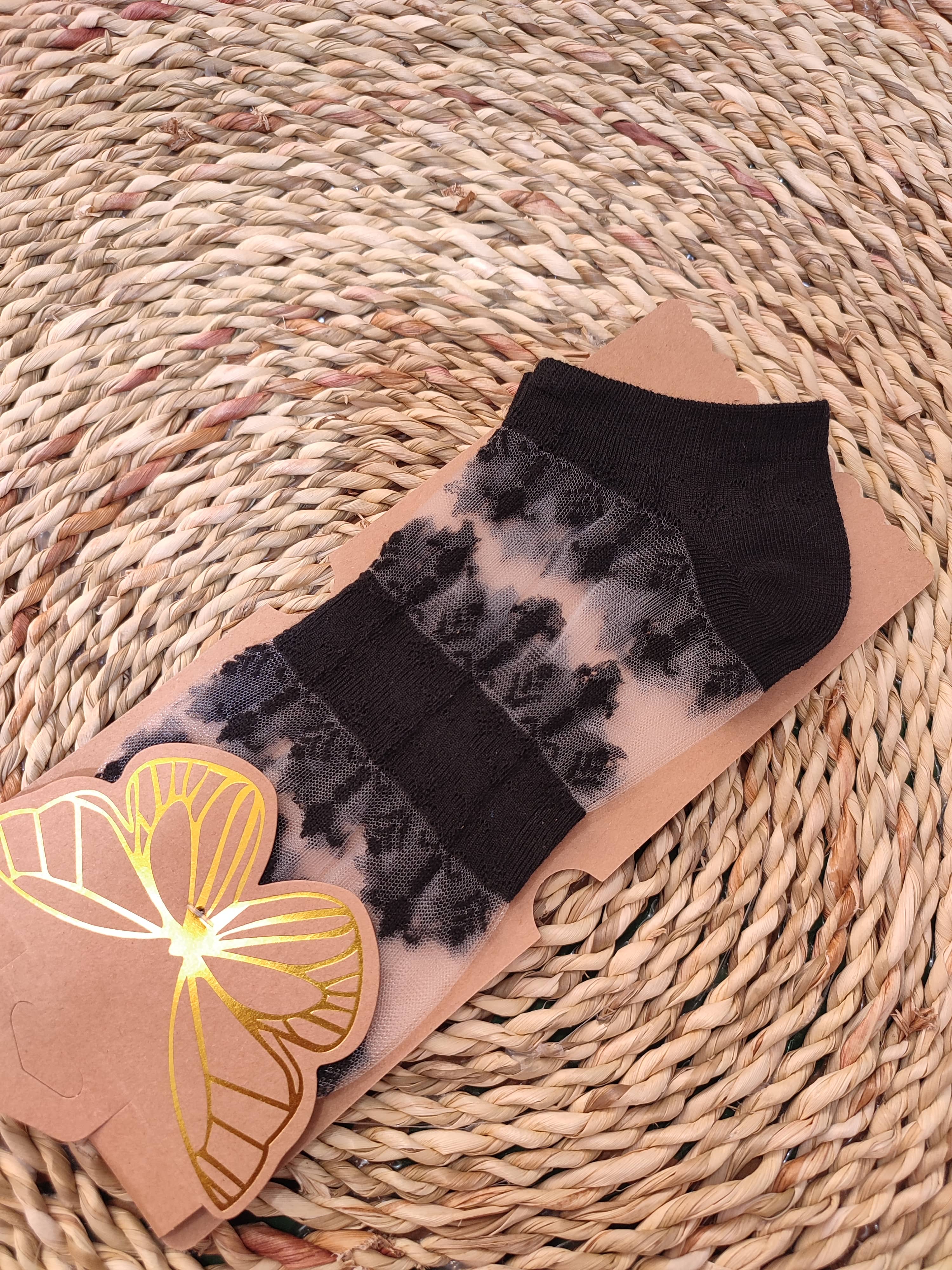 جوراب مچی تور مشکی وارداتی طرح گندمی زنانه پروانه