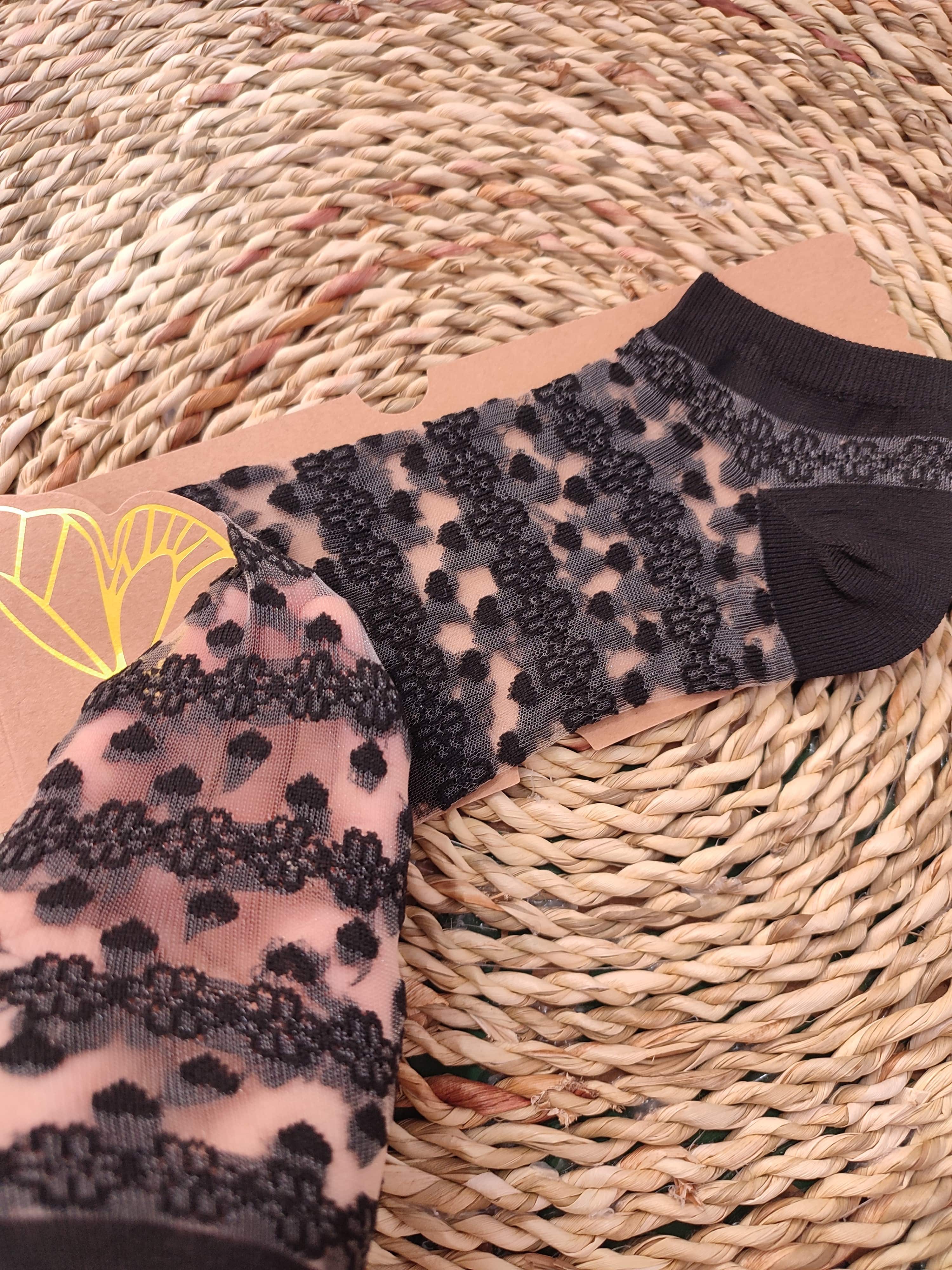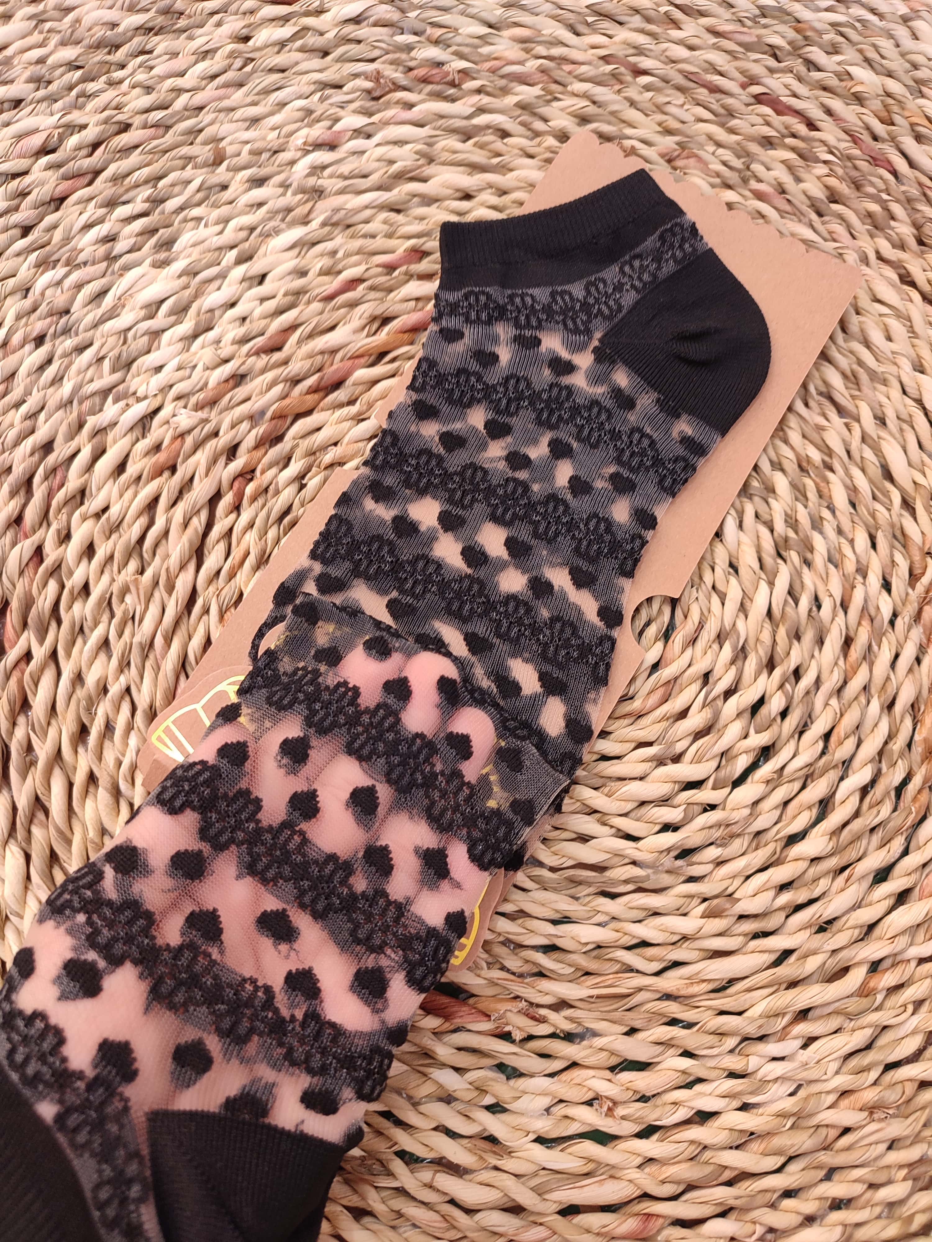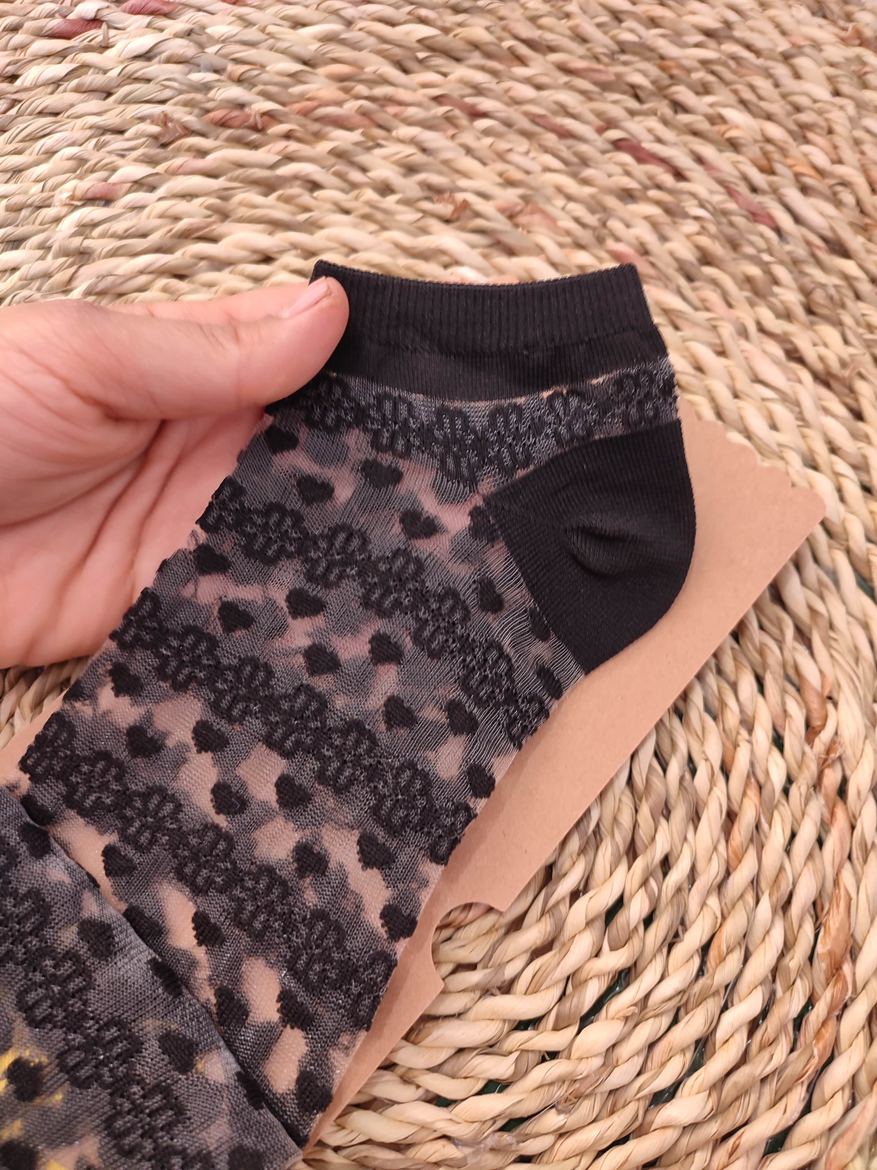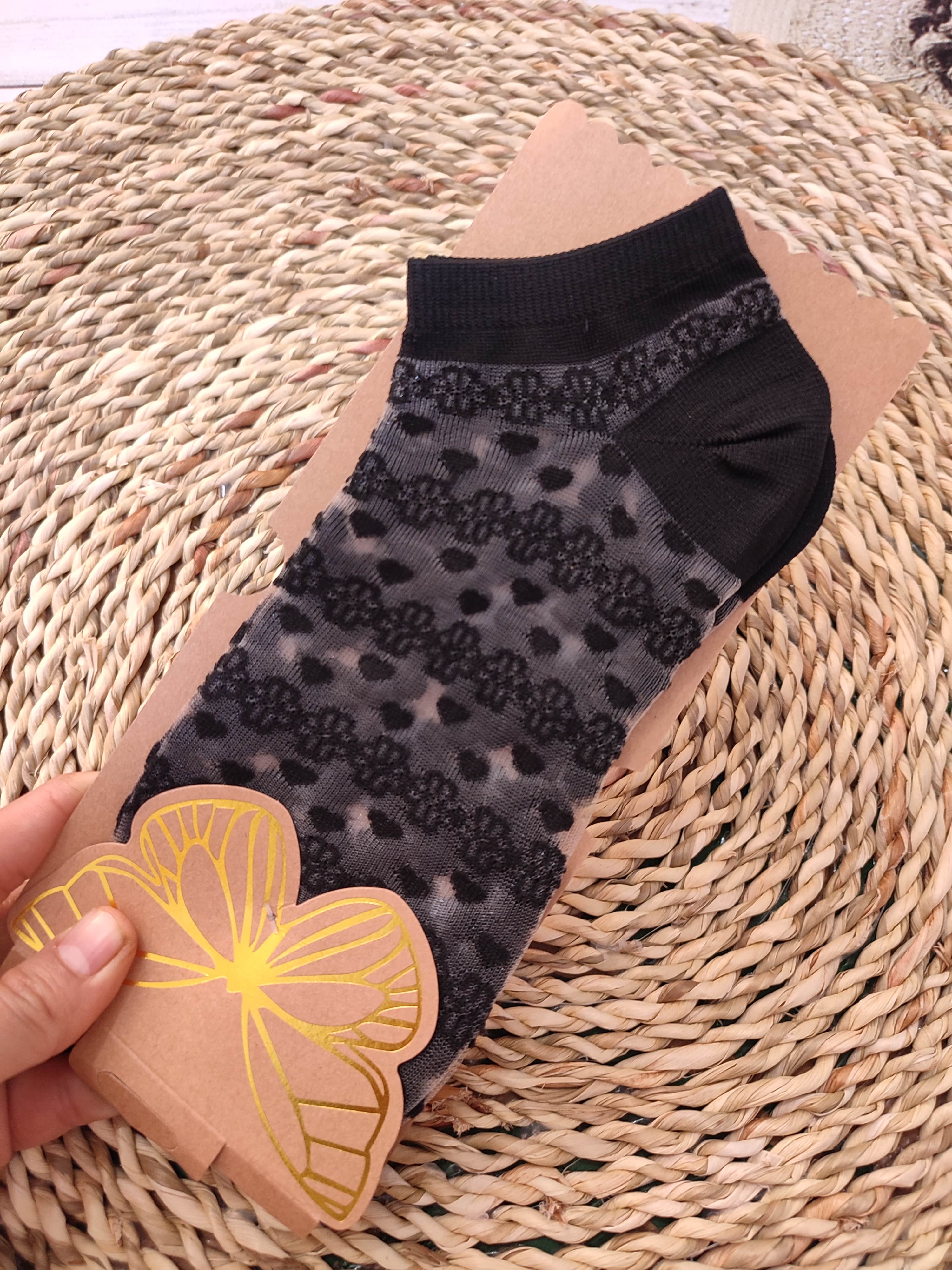 جوراب مچی تور مشکی وارداتی طرح قلب و گل زنانه پروانه
